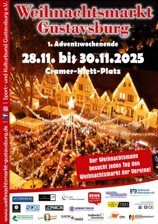 | | Vorweihnachtlicher Lichterglanz verwandelt einmal im Jahr den historischen Gustavsburger Cramer-Klett-Platz in einen der schönsten Weihnachtsmärkte im Rhein-Main-Gebiet. Unübertroffen in der Region ist die adventliche Atmosphäre durch das festlich beleuchtete Gebäudeensemble,...