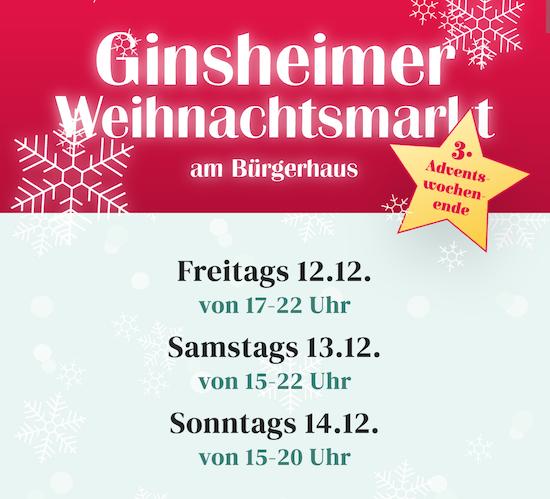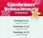 | | Der stimmungsvolle Bischofsheimer Weihnachtsmarkt findet immer am ersten Adventswochenende statt. Am Samstag, 29.11. und Sonntag, 30.11. werden die Stände rund um die evangelische Kirche zu finden sein. Nicht nur im Bereich der Weisenauer Gasse und dem angrenzenden Parkplatz...