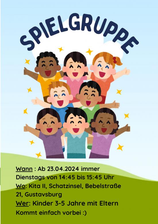| | Dienstags von 14.45 - 15.45 Uhr findet im Familienzentrum kostenlos eine Spielgruppe für Kinder zwischen 3 und 5 Jahren statt.